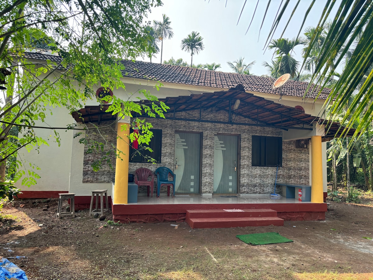 Superficie de la maison 480 pieds carrés. Superficie totale du terrain 10 000 pieds carrés. La maison est une SUITE 2 PIÈCES - Chambre avec climatisation, salon sans climatisation, reliés, pas de porte entre les deux pièces. Toilettes et salle de bain occidentales (avec geyser - eau chaude disponible 24h/24) attenantes au salon. Salle de bain, toilettes et lavabo, tous les trois sont séparés et à l'intérieur de la maison. Toilettes supplémentaires dans la cour avant (eau 24h/24) Entouré de noix de coco, mangue, noix de bétel, banane, goyave, arbres à confiture Puits à l'arrière de la maison. Une vraie maison konkan.