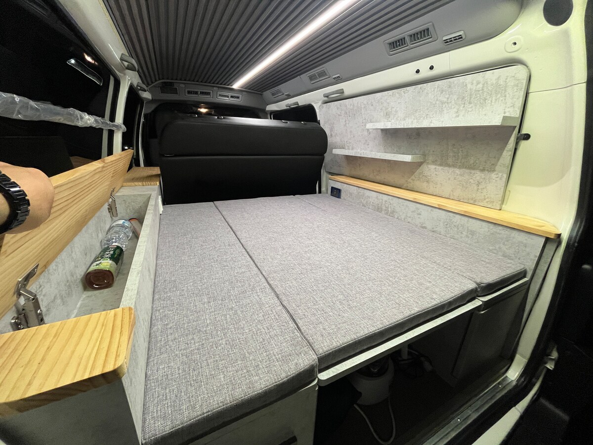 🚌 Dew ! Ouvert⛺️ Accessoires de base pour véhicules//🚐 * * Parking climatisé * * Coulenceter * * Livre latéral du véhicule * * Chaise de lit plate * * Tapis de couchage double haute densité * * Armoires multifonctions dans l'arrière-salle * * Sortie d'entrée extérieure. * * Batterie en fer au lithium de 300 h * * Onduleur 2 200 W * * Prises 110 V/USB intérieures * * Alimentation électrique 12 V * * La bande de lampe atmosphérique comprend des packs * * Rétroviseur électronique polyvalent * * Fenêtre extérieure/Poussée de camping-car * * Planchers en boisé dans tout le logement * * Appareils d'éclairage dans toutes les pièces * * Masque en verre d'intérieur pour toutes les voitures * * Titulaire du téléphone portable * * Ligne électrique de 9 mètres avec emballage * * Câble de recharge de voiture en fer au lithium de 5 m inclus * * Extincteur