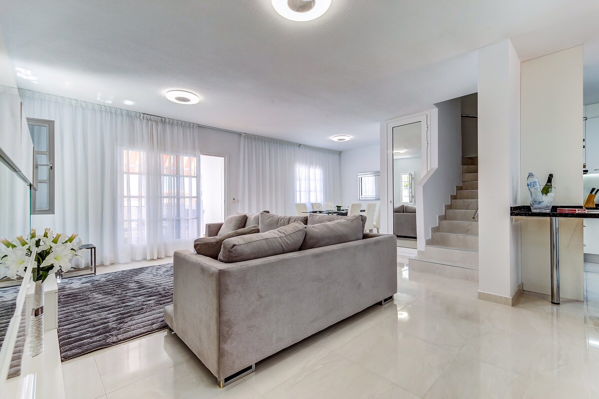 Spectaculaire villa dans le prestigieux quartier du Ténérif Sud - Caldera Del Rey. Il est à 200m du parc aquatique N1 du monde nommé par TripAdvisor années consécutives - SIAM PARK. À 300m se trouve le plus grand centre commercial du sud - SIAM MALL. Vue imprenable sur le centre touristique - Playa de Las Americas, les plages sont à 1.4 km. Différentes zones de repos, bronzage, petits déjeuners, dîners dans des espaces uniques pensés en détail. Jardin tropical avec pergola qui donne de l'ombre toute la journée et merci avec sa fraîcheur et sa couleur. Piscine infinity qui relie ses eaux à l'horizon de l'océan. Les couchers de soleil sont un spectacle de couleurs, une image qui change tous les jours, mais qui ne laisse jamais indifférent. Grand salon uni avec kitchenette avec vue sur mer. Toutes les chambres ont leur sortie indépendante sur le jardin, ce qui améliore la vie privée de chacun. Chaque coin de la Villa réveille les meilleures sensations et accueille pour que vous profitiez au mieux de vos vacances.