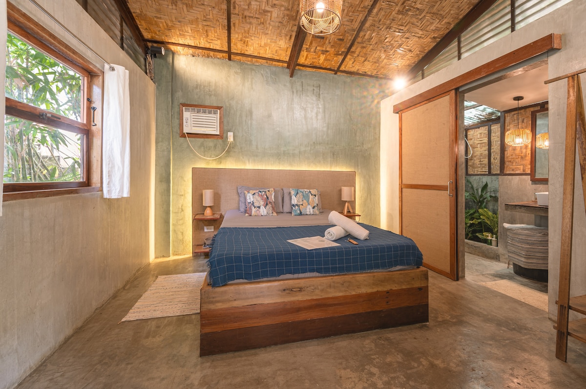 Nichée dans un coin paisible et luxuriant de Siargao, cette villa privée d'une chambre offre l'escapade parfaite pour les couples ou les voyageurs en solo à la recherche de tranquillité sans être trop loin de l'action. Située à seulement 10 minutes de la ville animée de General Luna et à seulement 2 minutes à pied d'une plage de sable blanc immaculée, cette charmante villa allie intimité, confort et commodité dans un cadre serein.