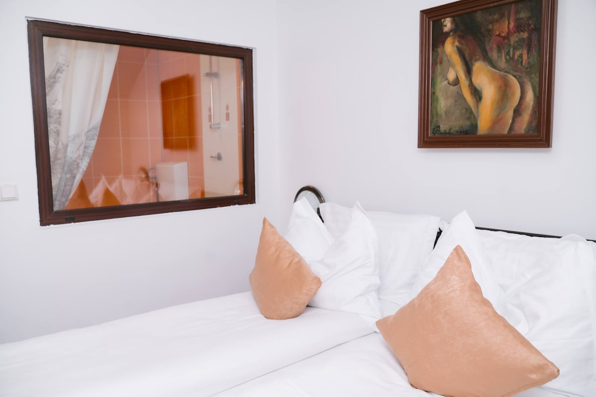 Casa Cu Usi - House of Doors à Sighişoara propose des chambres familiales avec salles de bain privées, parquet et armoires. Chaque chambre comprend une télévision, une douche, un sèche-cheveux et des articles de toilette gratuits. Les voyageurs bénéficient d'une connexion Wi-Fi gratuite, d'un café et d'un parking payant sur place. La propriété est très bien notée pour son hôte sympathique, la propreté de la chambre et son emplacement pratique.
