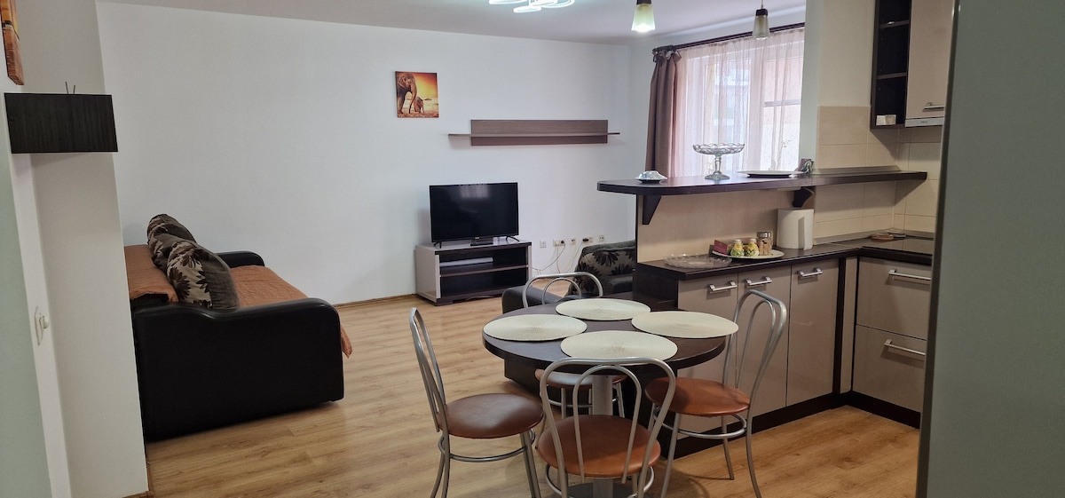 C'est un appartement spacieux, confortable et meublé de manière moderne avec deux chambres , un salon spacieux, une cuisine, une salle de bains avec baignoire , un balcon avec une vue charmante Il est situé à 1, 8 km de Piata Mare .