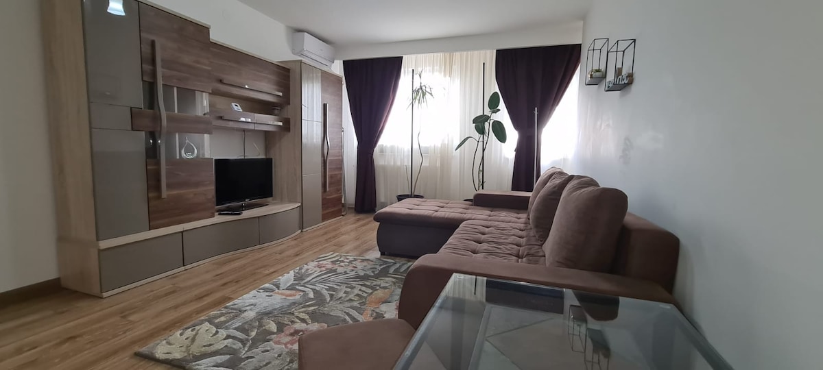 C'est un appartement spacieux, confortable et meublé de manière moderne avec deux chambres , un salon spacieux, une cuisine, une salle de bains avec baignoire , un balcon avec une vue charmante Il est situé à 1, 8 km de Piata Mare .