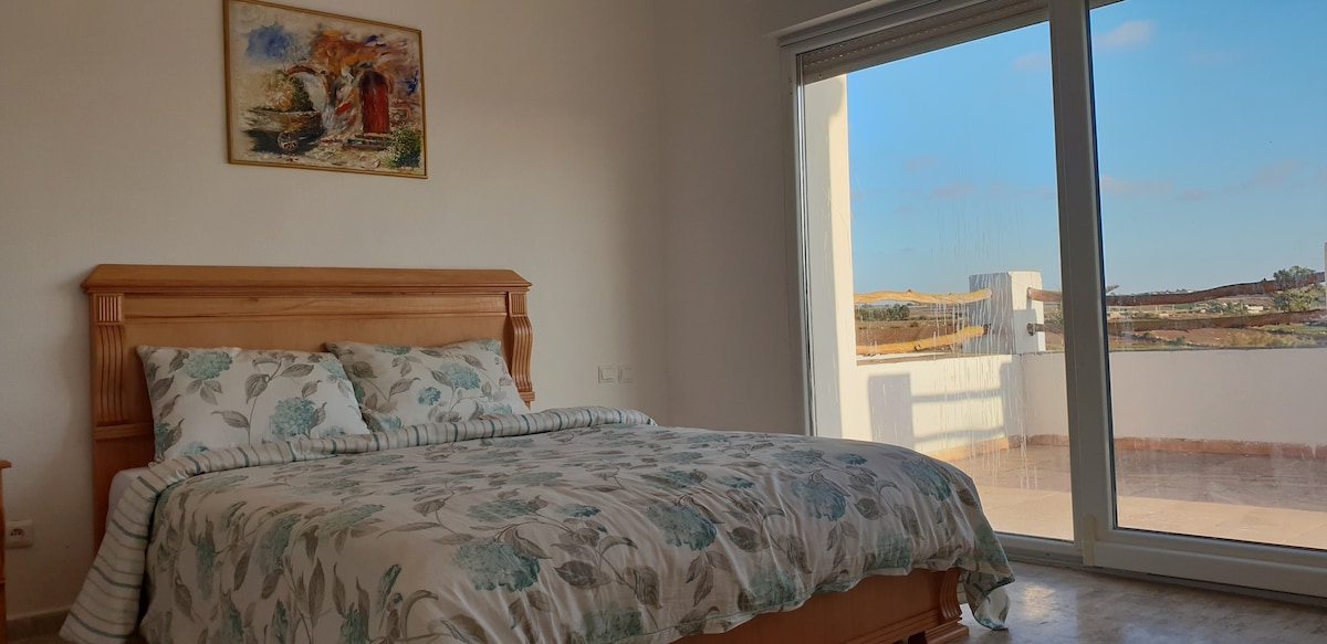 Votre deuxième petit chez vous, vous offre un séjour de détente pour tout le monde Spacieux, calme avant tout, très bien équipé et proche de toutes commodités. A deux pas de la corniche et à mi-chemin entre SIDI BOUZID et LA PLAGE d'ELJADIDA, idéale pour profiter de l’océan, à environ 2 mn à pied, d'un parc dans la même rue, des cafés, restaurants et un parc d'attraction..... Et avec une terrasse spacieuse pour profiter du climat accablant de la ville de MAZAGAN en toute sérénité et intimité.