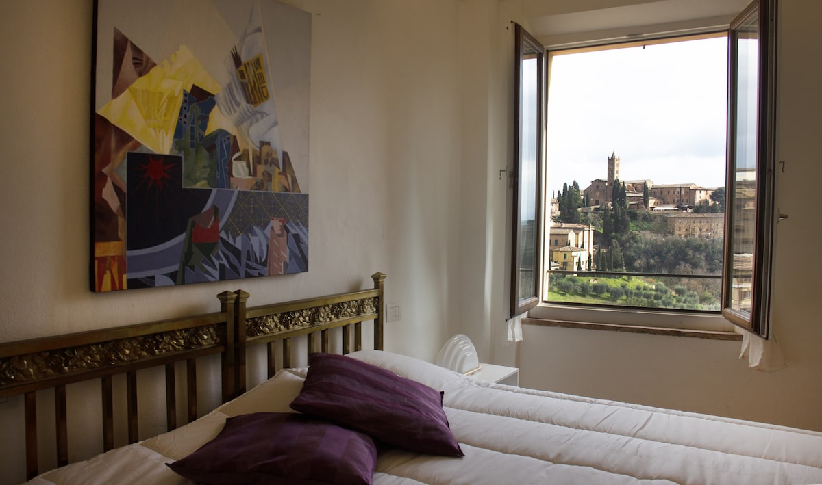 Le logement, totalement indépendant et récemment rénové, est une partie des anciennes pièces d'une villa du XIXe siècle entourée de verdure mais très proche du centre, avec un panorama ouvert sur les oliveraies verdoyantes et la ville. L'appartement fait partie d'un bâtiment récemment rénové, à l'origine des écuries pour une villa du XIXe siècle. Immergé dans la campagne siennoise, mais à quelques minutes du centre-ville. Elle dispose d'un accès indépendant et d'une vue imprenable sur Sienne et une vallée d'oliveraies.