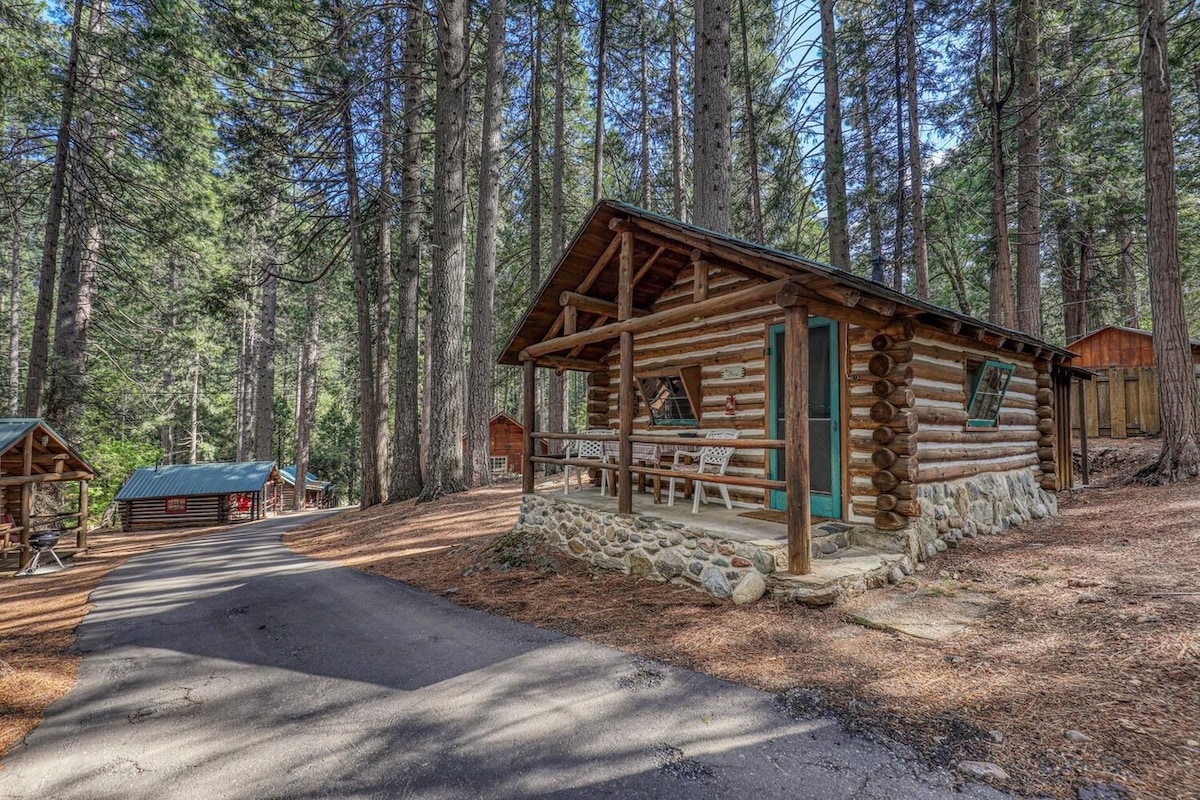 Escape to the rustic charm of Fir, a small historic cabin rental at the Yuba River Inn in Sierra City, California. This intimate one-bedroom, one-bathroom cabin with kitchenette exudes a cozy ambiance. Approach Fir, and you'll find a shared front porch that captures the essence of communal living in this historic setting. Adorned with comfortable seating, it's a perfect spot to connect with fellow travelers or simply soak in the serene atmosphere of Sierra City.