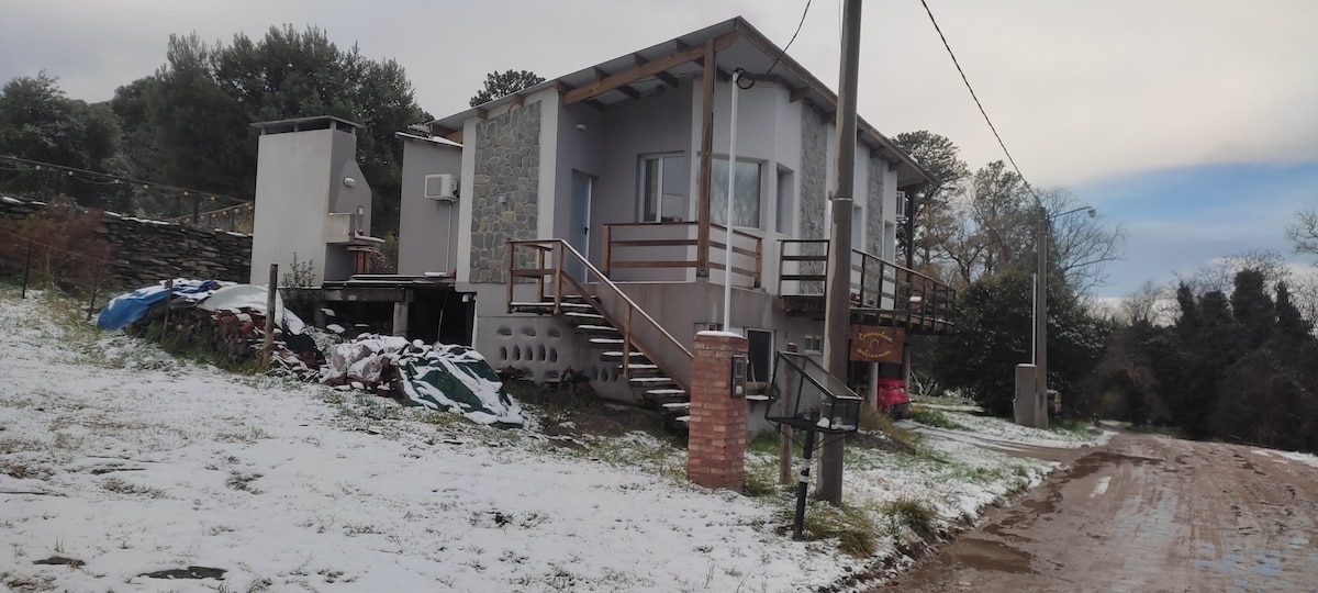 Cabaña de troncos, rústica, cálida, con todas las comodidades. Rodeada de bosque en el corazón de las sierras. Ideal para disfrutar de este lugar mágico las cuatro estaciones del año.