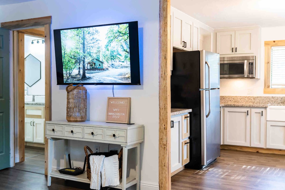 Welcome to The Cali Cabin! This newly remodeled 2 bedroom,1 bath cabin has everything you need for your mountain escape. Situated on 1.2 acres and bordered by Sierra National Forest,the charm is inescapable. Not only is the space beautiful and private, but the location is also unbeatable! You are only: 5 Min walk to downtown North Fork 3 Min drive to Manzanita Lake 8 Min drive to Bass Lake 40 Min drive to South Entrance of Yosemite North Fork is the exact center of CA! Airstream not included.