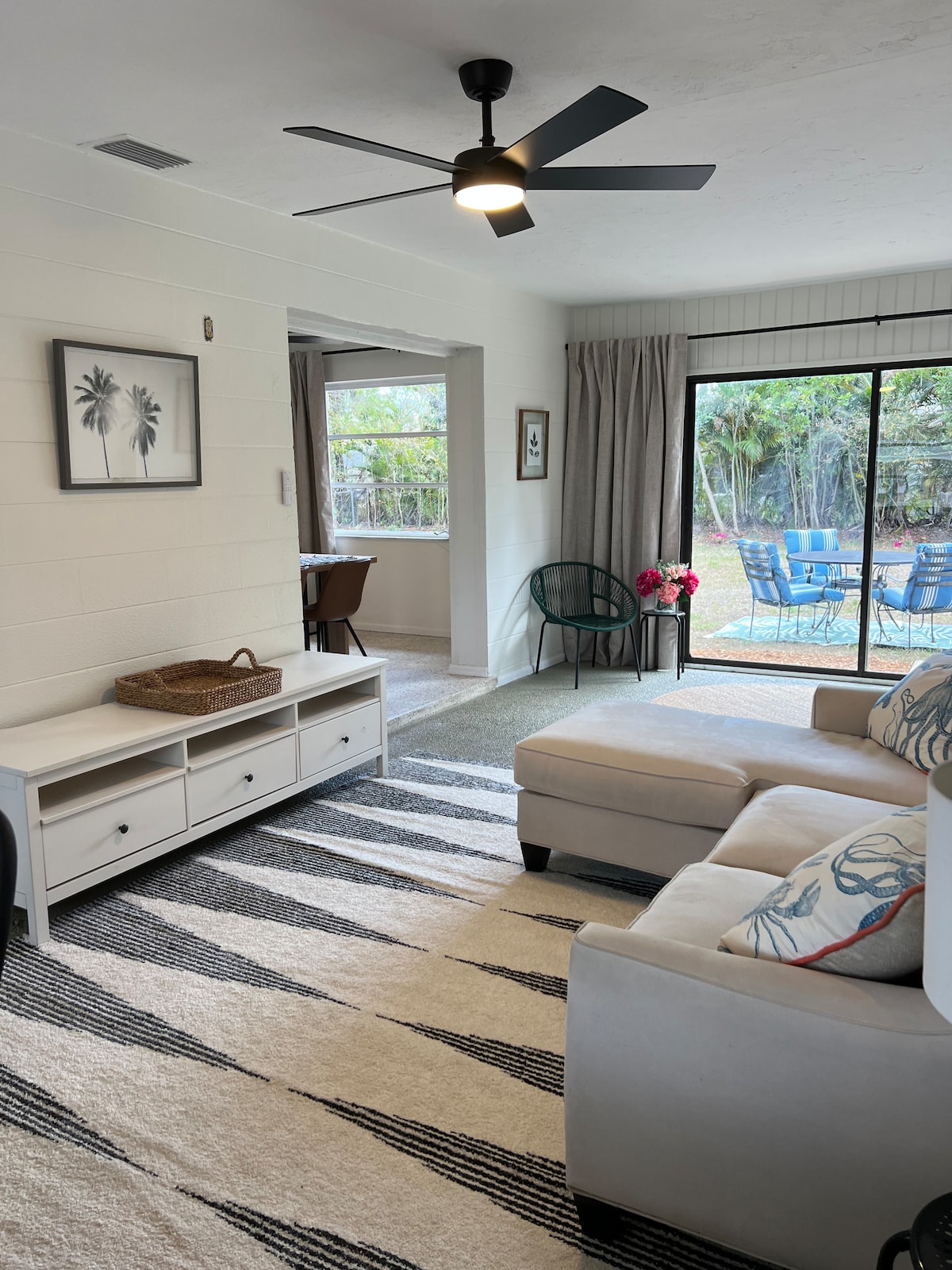 Unwind & Refresh! Our perfect 3/2 getaway is fully remodeled and our cozy retreat rests in the most ideal location for everything Sarasota has to offer! Just 2 mi. to Siesta Key Beach! Beach towels, chairs & toys provided. Grocery, restaurants and unique shops within 1.5 mi. Indulge in watching gorgeous sunsets, walks on the beach, shop/dine in the many cafes in our community. Extras for your use-hammock, outdoor grill, board games, books, large screened in patio. Family neighborhood. Enjoy!