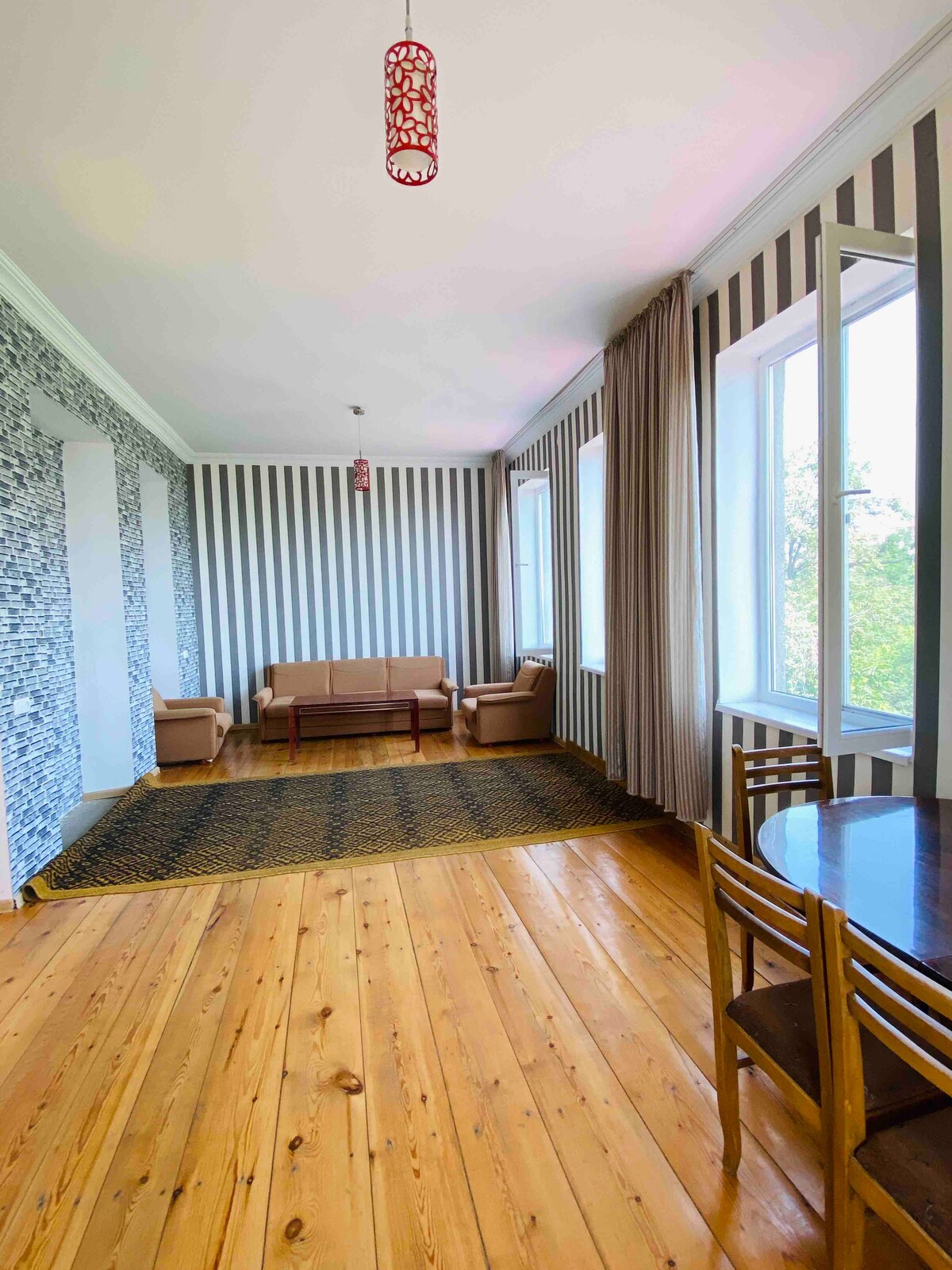 endroit confortable pour passer du bon temps dans notre ville. La chambre est récemment rénovée, propre et très confortable. Nous sommes très proches du monastère de Bodbe, nos clients peuvent simplement marcher jusqu'à Monatery et profiter de l'air frais de la forêt agréable pendant 15 minutes à pied, ou ils peuvent conduire en quad. À côté, il y a un restaurant avec de la bonne nourriture géorgienne.