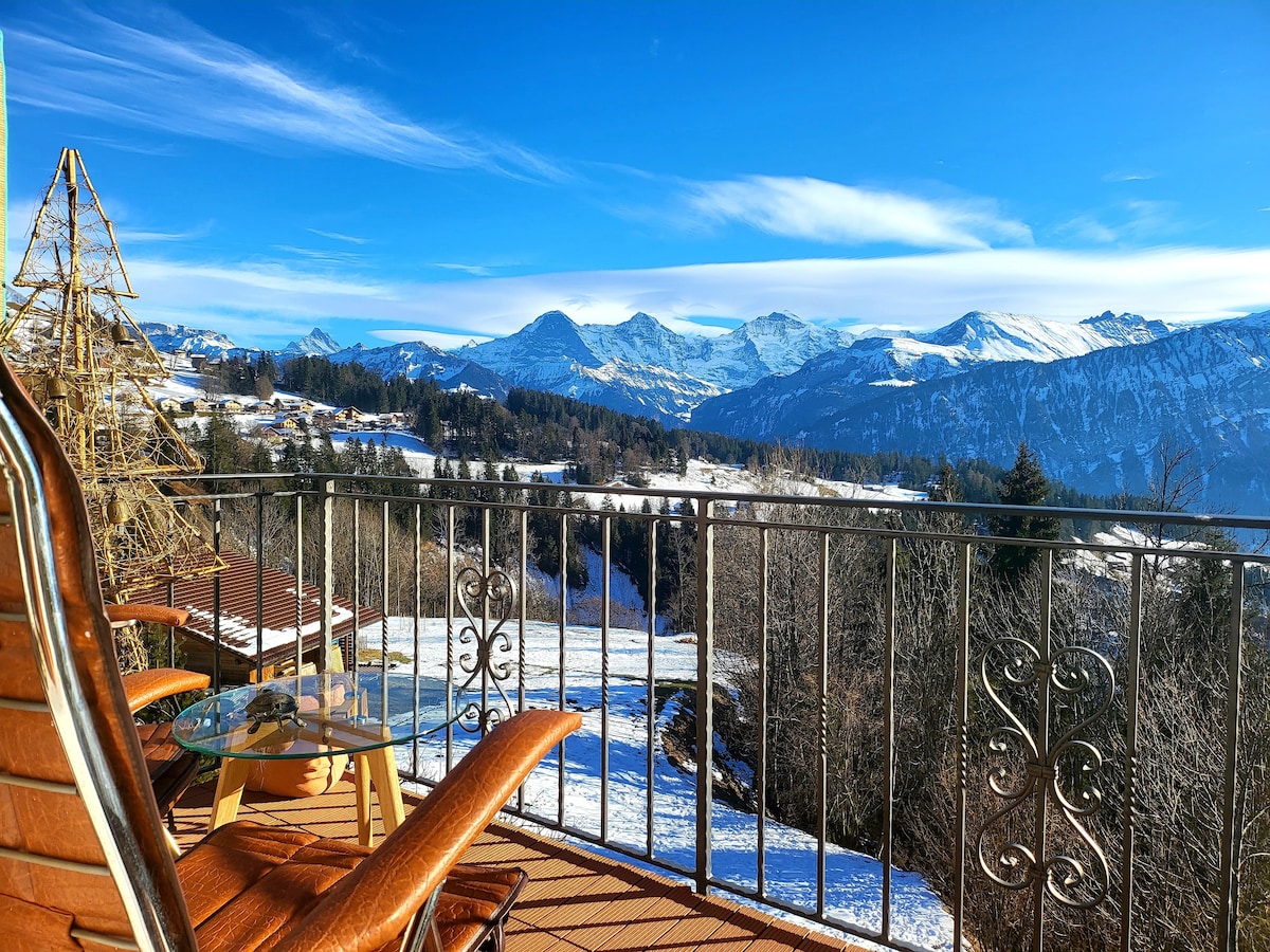 Notre maison se trouve dans un endroit calme à la périphérie du village, d'où partent des sentiers de randonnée et des pistes cyclables. Profitez d'une vue inoubliable sur les sommets de l'Eiger, du Mönch et de la Jungfrau ainsi que d'une vue magnifique sur le lac de Thoune. La région offre de nombreuses destinations pour des excursions et des randonnées autour du lac, qui invite à la détente avec ses zones de baignade accueillantes. Le domaine skiable de Schwanden est à seulement 10 minutes et l'excellent domaine skiable de Grindelwald à 60 minutes.