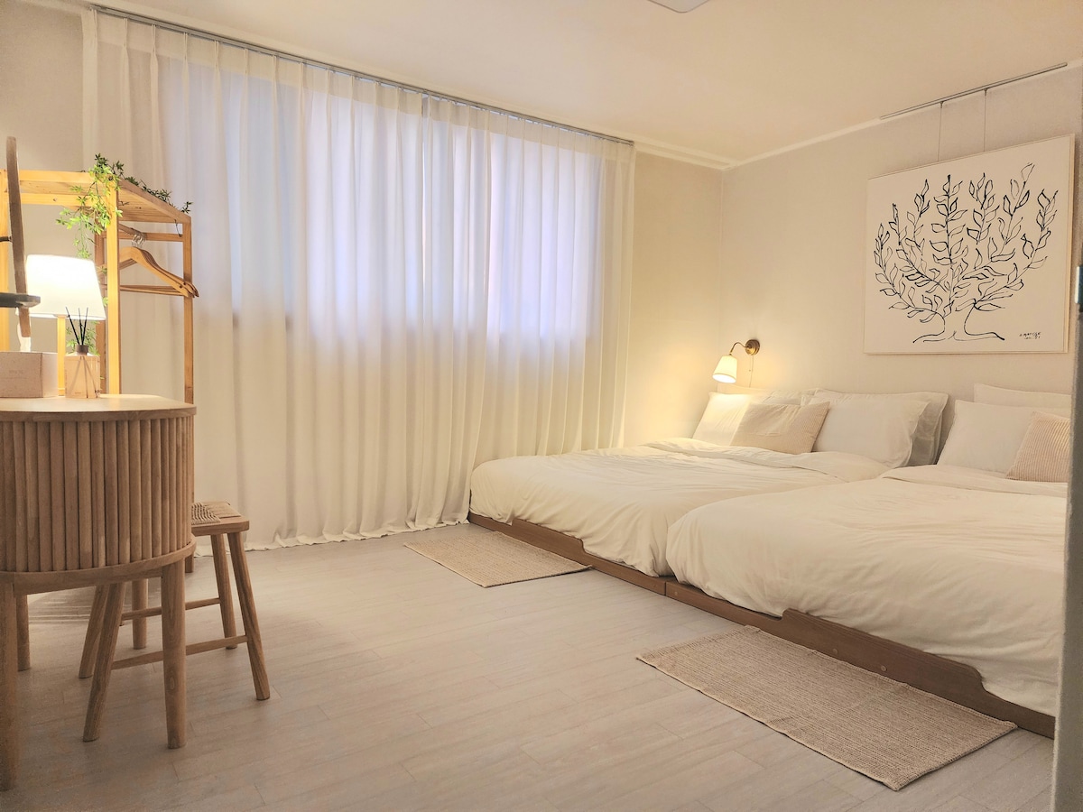 OPEN [Séjour à Séoul] Centre de Gangnam/3 chambres 3 lits queen size/Station Gangnam/Nonhyeon, Sinnonhyeon/Sinsa/Garosu-gil/Transports pratiques