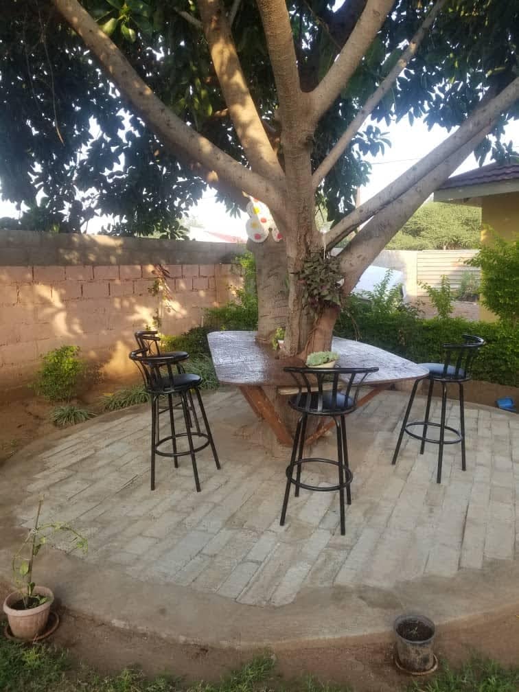 Away from the crowded city, a cosmopolitan unique 2 bedroomed (Queen ensuite and a bunk bed) Aframe logcabin in the outskirts of Gaborone, 20km drive from Gaborone North, Mochudi to be precise. Breath taking interior. Spacious yard with a blossoming garden suitable for get togethers with friends, situated in a farm just 1.5km behind Kgabo Mall. Peace and Tranquility are the plugs right here. Rejuvenating space in the bush with sounds of birds singing to sooth your soul.