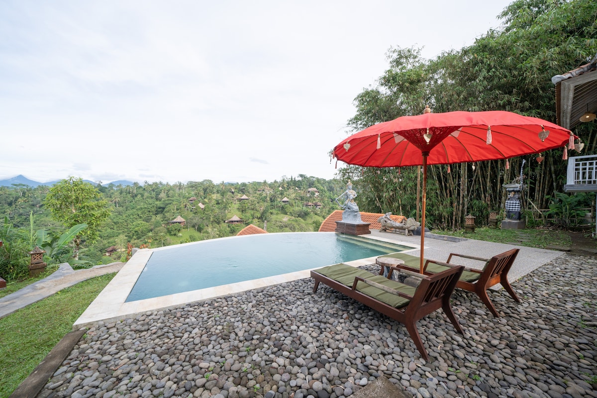 Plongez-vous dans la véritable essence de Bali. Perché sur les contreforts du mont Batukaru et entouré de 4 montagnes qui vous regardent jour et nuit. Vivez dans un Gladak javanais de plus de 70 ans au milieu de la forêt tropicale. Notre propriété vous donnera l'impression de coexister avec la nature à tous points de vue, entouré d'arbres, d'animaux sauvages, de montagnes et de vallées. Explorez la beauté de Jatiluwih à plus de 700 m au-dessus du niveau de la mer et découvrez d'innombrables activités.