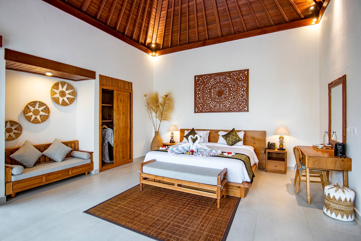 Imprégnez-vous du confort d'un design traditionnel avec draps et serviettes frais, A/C et lits confortables pour un sommeil parfait. Les chambres sont équipées d'une armoire, d'un porte-serviettes et d'un coin salon extérieur privé. La plage est accessible en 2 minutes à pied, avec des dauphins joueurs et des restaurants délicieux à proximité. Ne manquez pas les magnifiques cascades et temples des environs.