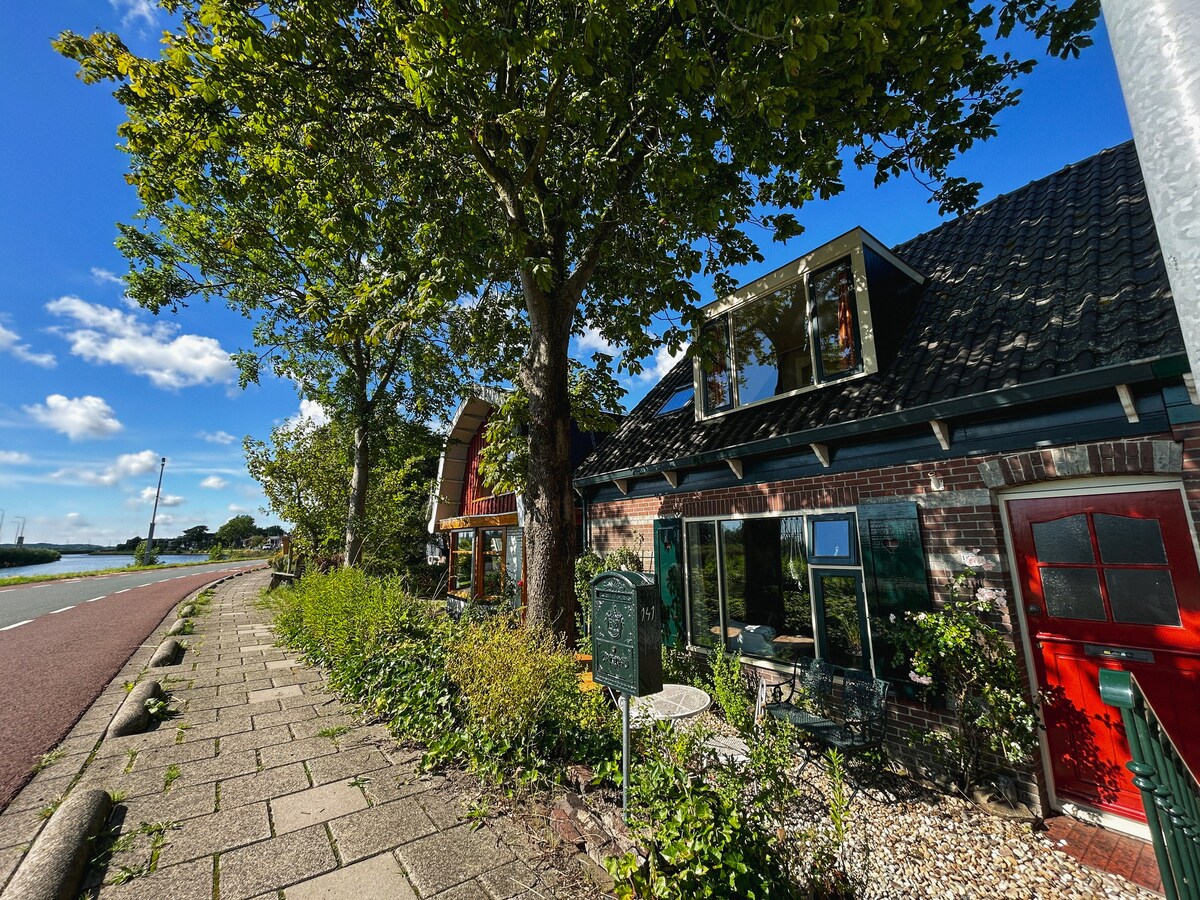 Het vakantiehuis is gelegen aan het Noord-Hollands kanaal. Het huis is niet heel stil gelegen, maar wel gezellig en centraal t.o.v. Alkmaar, Bergen en Schoorl. Zeer geschikt voor vriendinnenclubjes, fietsclubjes en gezinnen, die niet op een vakantiepark willen zitten. Het huis heeft veel oorspronkelijke details, wat het sfeervol en karakteristiek maakt. Het huis is geschakeld aan de woning van de eigenaar, maar er is volop privacy en een royale eigen tuin.