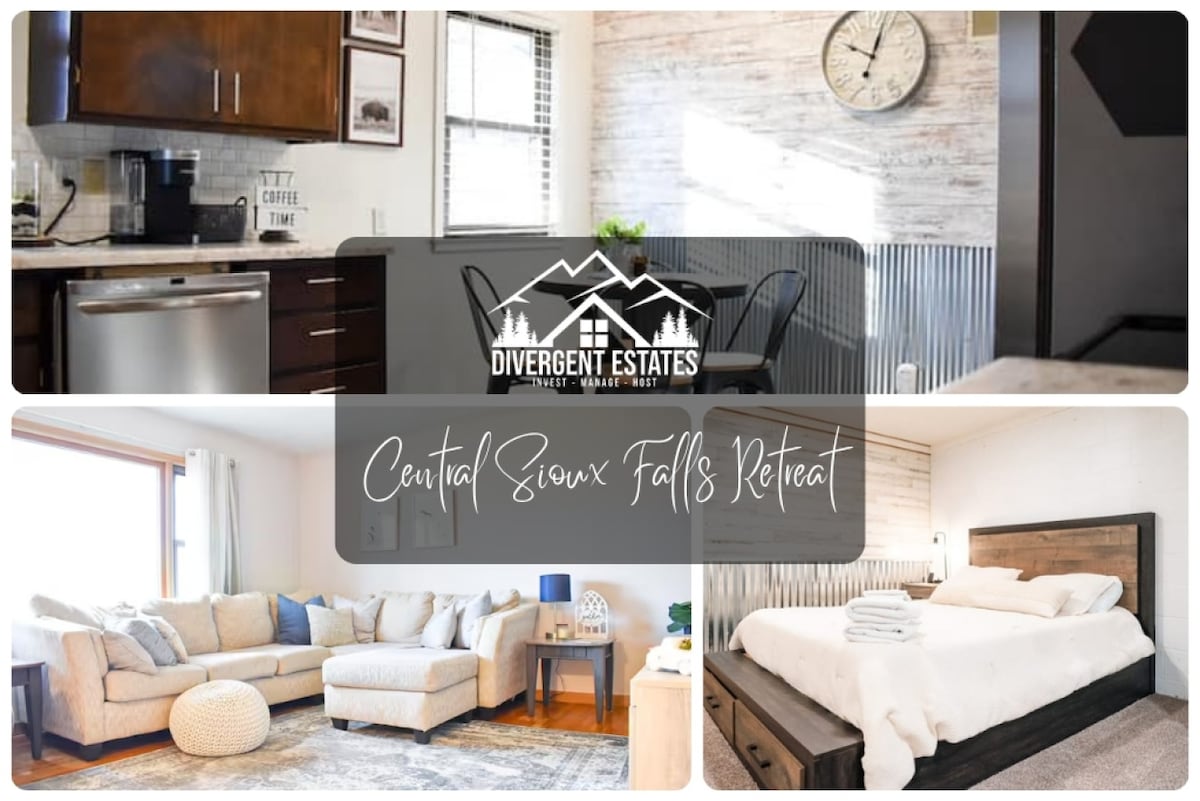 Welcome to this one-of-a-kind, majestic elephant themed stay! Newly remodeled, this apartment features a spacious floorplan and inviting atmosphere adorned with subtle elephant motifs. Enjoy lounging on the large sectional couch or a restful night's sleep on the comfy king-sized bed! Conveniently located blocks away from downtown, there are many local attractions, restaurants, and shops within a 5-minute drive. Offering the perfect blend of comfort and convenience for your next Sioux Falls Stay