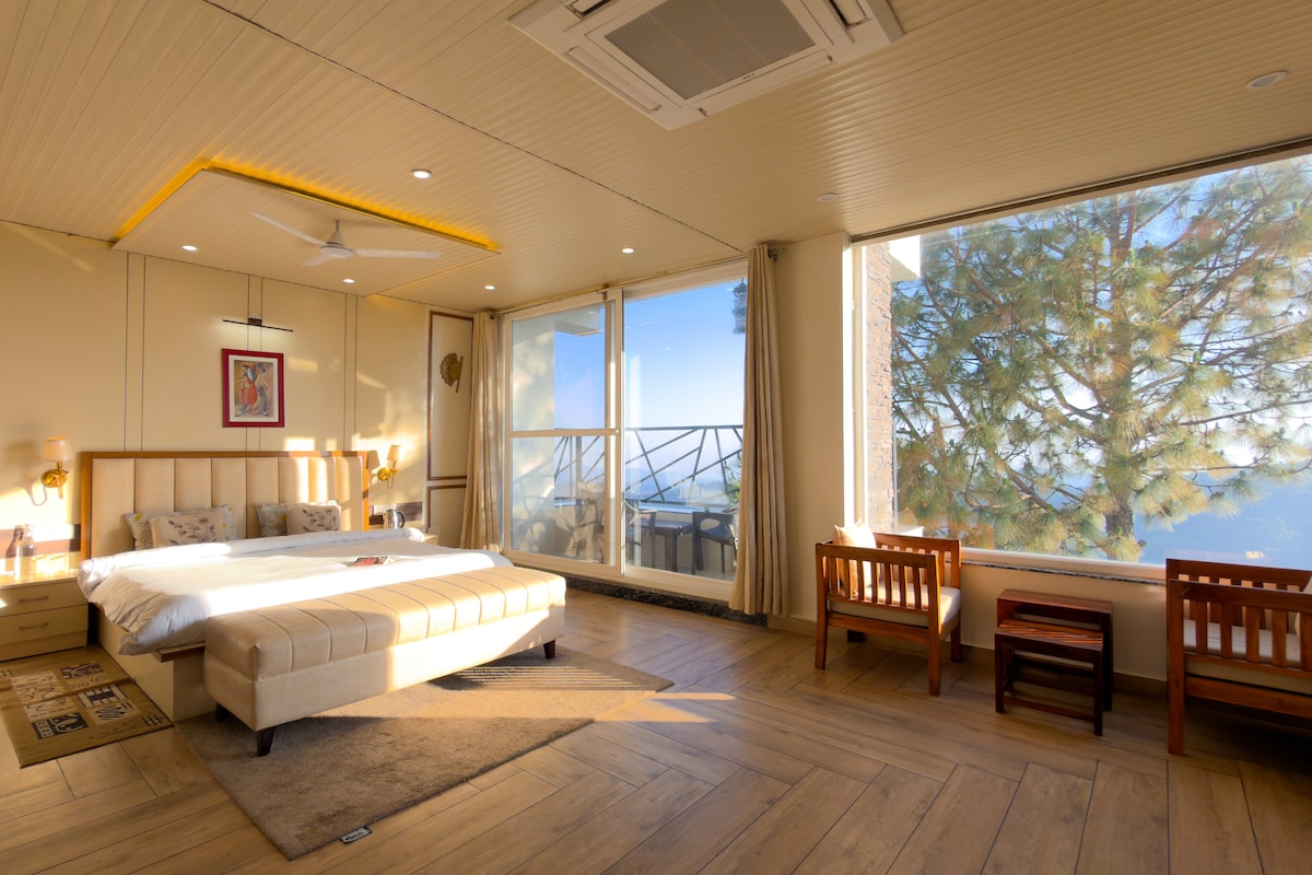 Située dans les collines de Kasauli, cette élégante maison de 3 pièces offre une escapade tranquille au milieu des forêts et des vallées. Un salon spacieux se marie sans effort avec un coin repas chic et une cuisine modulaire entièrement équipée, tous décorés avec des planchers en bois chauds, des meubles somptueux et des accents modernes de bon goût. Chaque chambre s'ouvre sur un balcon panoramique privé avec vue sur la forêt et la vallée, avec une balançoire et un coin salon pour des moments calmes et pittoresques.