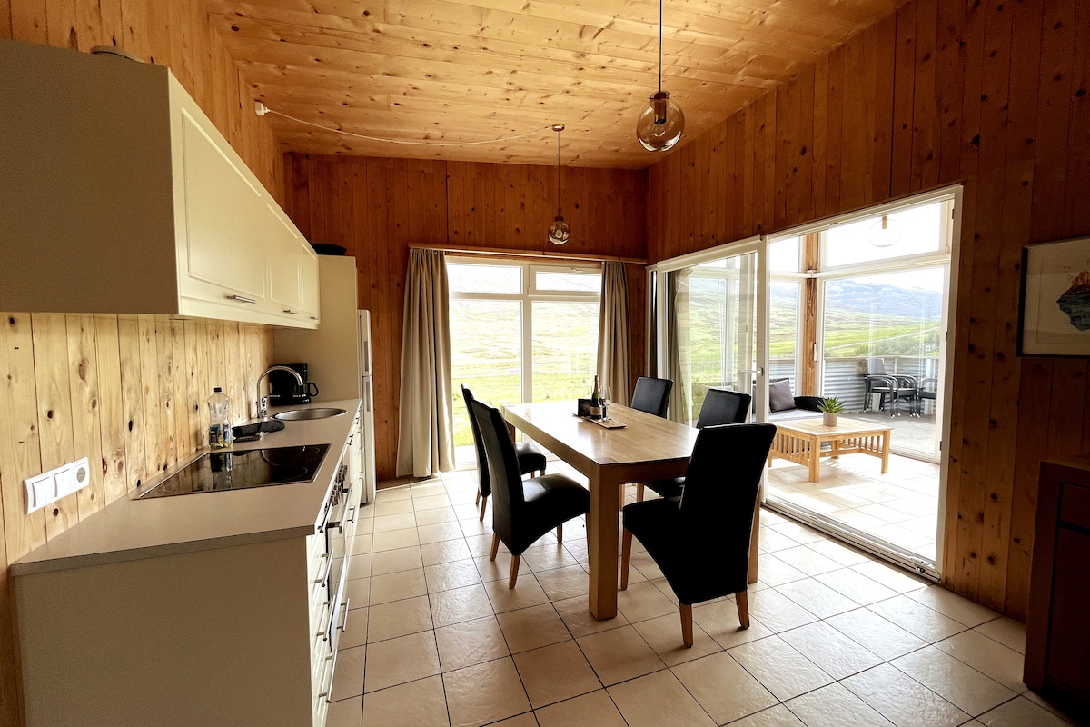 Le chalet est situé au fond du fjord Ólafsfjörður, dans les montagnes. Il dispose de deux chambres, d'un salon et d'un jacuzzi géothermique privé dans un jardin intérieur, qui peut être ouvert sur la terrasse. Le chalet est bien équipé (cuisine entièrement équipée et machine à laver), dispose d'une connexion Wi-Fi pour les voyageurs, et de matelas de qualité avec du linge de maison confortable, des serviettes douces et des couvertures chaudes. La région est extrêmement paisible. Dans la cour arrière, il y a un terrain de football chauffé et une aire de jeux pour les enfants.