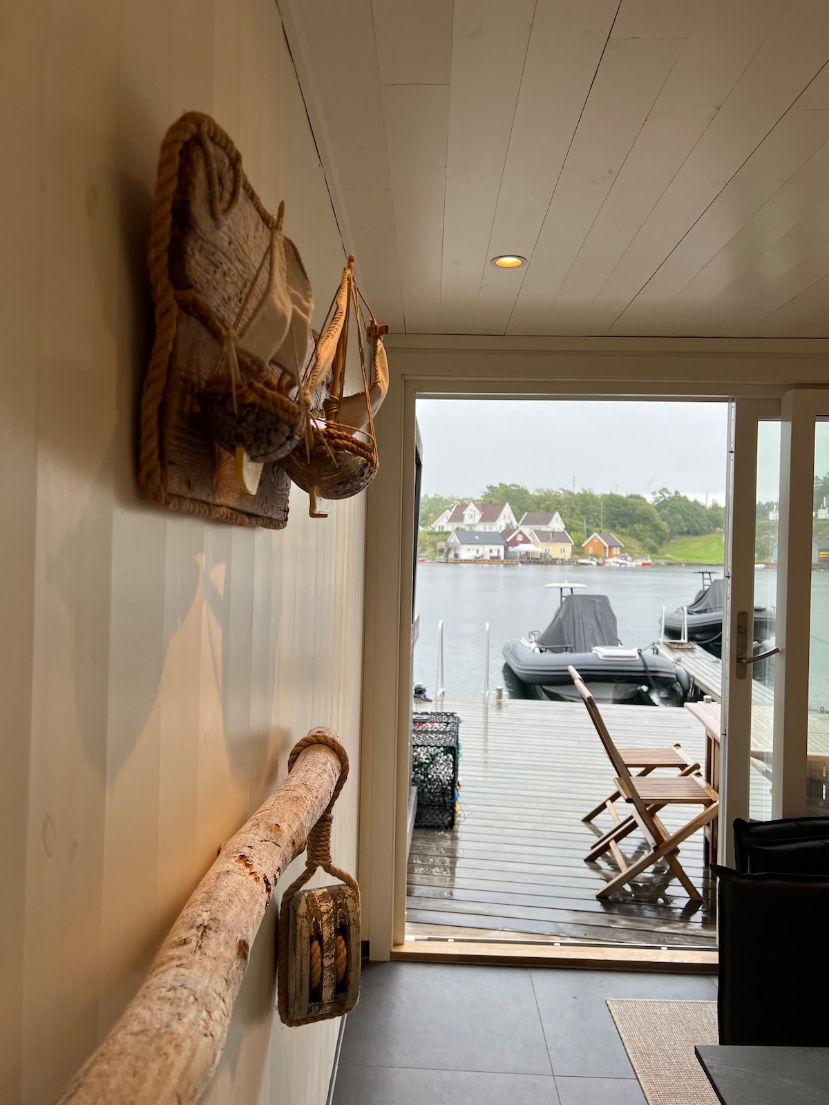 Cabane à bateaux confortable directement sur le bord de l'eau. Grand espace de quai pour profiter des journées de farniente et des soirées d'été, du soleil du soir. Bateau ancien de 14 pieds avec 9'9 chevaux à louer. Pas un bateau pour marcher le long de la mer et pêcher, mais agréable à conduire un peu le long du rivage. Le locataire paie le carburant.