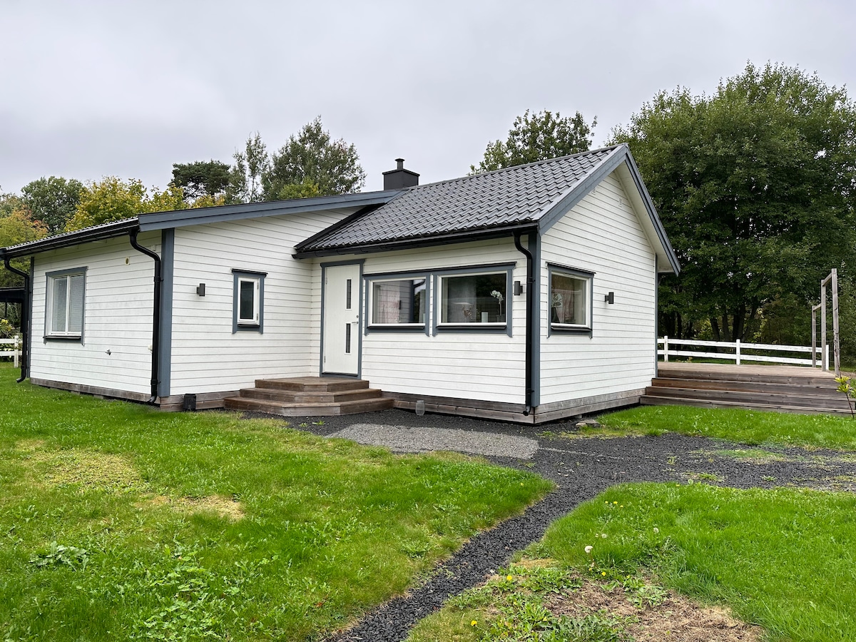 Un petit chalet confortable récemment rénové d'environ 50 m2 avec cuisine, chambre, salon avec canapé-lit et toilettes avec douche. La maison est située à Eggby, à environ 10 minutes en voiture de l'hippodrome d'Axevalla, du parc d'attractions Skara sommarland, de l'église du monastère de Varnhem et du lac Hornborgasjön. À distance de marche de la plage et à proximité de la nature et des pistes cyclables. À 300 mètres d'un magasin ouvert 24h/24 et 7j/7. Il y a 1 lit double, 1 canapé-lit et 1 lit bébé. Apportez vos propres articles d'hygiène, draps et serviettes. Animaux de compagnie acceptés. Il est interdit de fumer à l'intérieur.