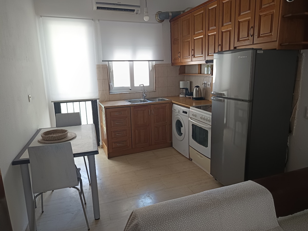 Appartement spacieux dans la ville de Skiathos avec balcon. Idéal pour une petite famille ou deux couples. L'appartement dispose d'un coin salon et d'un coin salon/cuisine avec lave-linge. Le coin salon dispose d'un canapé-lit d'angle qui se transforme en lit double. Un escalier en colimaçon mène à la chambre au deuxième étage avec un lit double. L'appartement est situé à proximité du périphérique dans une rue résidentielle calme. Il est à 2 minutes à pied de l'arrêt de bus et du supermarché et à 5 minutes à pied du centre-ville.
