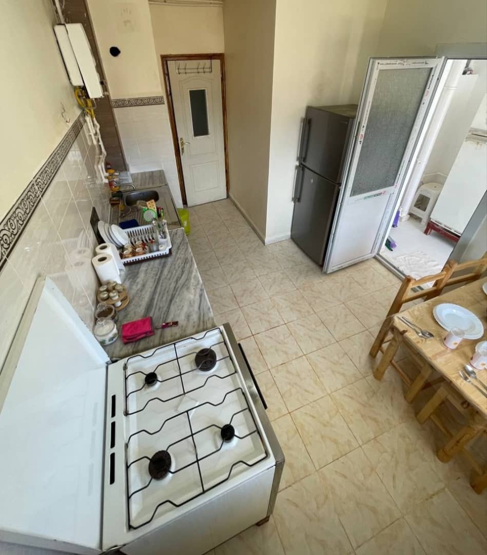 Appartement F4 très spacieux, sans vis-à-vis bien, au 3ème et dernier étage, équipé, 2 terrasse qui donnent une vue féerique, climatisé (2 unités qui climatisent toute la maison), stationnement disponible pour une voiture dans une cour cloturée au pied des escaliers, dans un cartier très calme, un accès entièrement indépendant, à 10 minutes de la ville, 10 minutes de la corniche de Skikda.