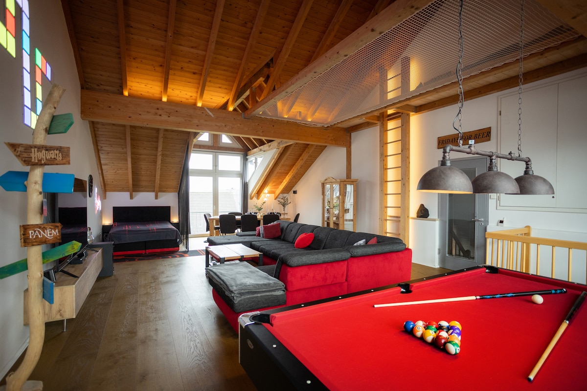 L'appartement unique, dans l'élégant bungalow des années 60, est situé au centre de Winterberg et juste à la lisière de la forêt : joliment meublé, adapté aux bébés et aux tout-petits, avec cuisine entièrement équipée, connexion Wi-Fi gratuite, lit king-size, PS4, grand canapé-lit, parking privé, 2 balcons avec barbecue et chauffage au sol. Pour les randonneurs, les familles et ceux qui aiment le calme et la tranquillité :) L'appartement entièrement modernisé pour jusqu'à 4 personnes, avec vue sur le tremplin de ski et la piste de ski, offre un séjour inoubliable.