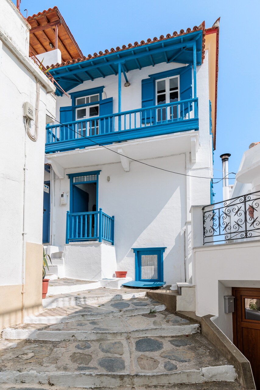 Maison de ville de caractère récemment rénovée dans un endroit idéal dans la vieille ville de Skopelos. À quelques pas de partout, mais juste assez loin sur la colline pour pouvoir profiter de la paix et de la tranquillité sur la superbe terrasse sur le toit avec sa vue à 340 degrés sur le port et la ville. Le salon principal offre une vue sur la mer depuis son balcon. Les 3 chambres sont de caractère et en accord avec l'histoire de la propriété. Un petit bijou et le pied à terre idéal pour explorer la ville et l'île !