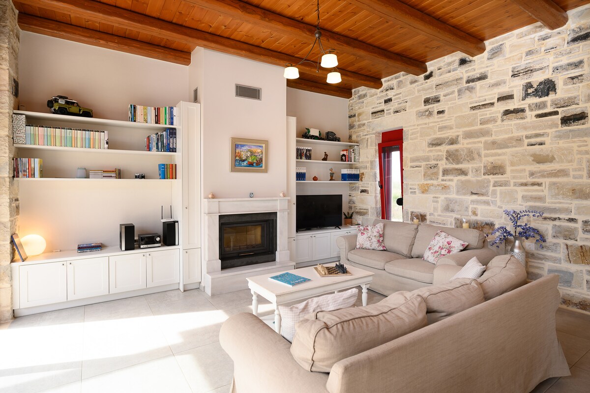 Notre villa, partie de CretanRetreat, offre une belle vue dans un lieu calme, idéale pour familles, couples et explorateurs. 98 m², 25 min d’Héraklion, 15 min de Cnossos, 30 min de l’aéroport. ‣ 3 chambres ‣ 2 salles de bain ‣ 2 lits Queen ‣ 4 balcons ‣ Jardin ‣ Parking sur place ✭ «L’un des meilleurs Airbnb où nous avons séjourné ! Superbe emplacement avec vue splendide, très calme, entouré d’oliviers. La villa a du charme et est parfaite pour visiter Knossos et Héraklion. »