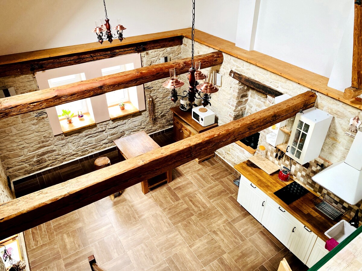 Remontez le temps dans notre maison familiale de 1844. Nous offrons une intimité absolue, une âme historique et un confort moderne. Parfait pour une escapade romantique, des excursions à vélo (sur piste) ou un séjour de travail tranquille dans la nature. Profitez d'un jardin privé, de poutres d'origine et d'une connexion Wi-Fi rapide. À seulement 50 minutes de Prague, à proximité de la ville historique de Kouřim et de la rivière Sázava. Cuisine entièrement équipée, lave-vaisselle et rangement sécurisé pour les vélos inclus. Découvrez la campagne tchèque authentique. Au plaisir de vous accueillir !