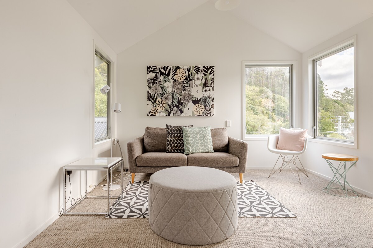 Nichée dans la banlieue attrayante de Vauxhall et à l'entrée de la péninsule d'Otago, vous trouverez une belle retraite privée. En bas d'un chemin en pente et au niveau inférieur de notre maison, vous disposerez de votre propre entrée avec terrasse privée, d'une chambre élégante, d'un salon séparé avec canapé-lit, d'une salle de bain spacieuse et ensoleillée et d'une petite kitchenette avec toutes les commodités de base. Calme et privé avec vue imprenable depuis le salon de la chambre et la salle de bain ! Emplacement idéal pour explorer la magnifique péninsule d'Otago !