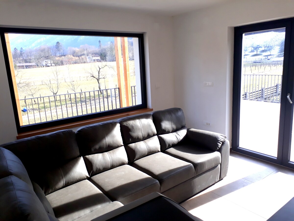 Whether you are coming because of our beautiful mountains, skiing, biking, hiking... this is your place to stay. Apartment on the upper floor of the house offers 2 rooms (1 with king size bed and a living room with an extendable sofa) that share a common balcony. Kitchen is equiped with all basic cookware and refrigerator. Roomy bathroom is equiped wit a washing machine. Every need that you might have will be taken care off. Welcome!