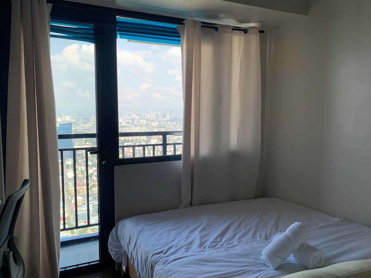 À Makati City, notre studio de 2 lits au 48e étage offre une vue sur la ville, une connexion Wi-Fi rapide, une télévision 55 pouces, une nouvelle climatisation et tout le nécessaire pour se sentir chez soi. Nous avons soigneusement conçu l'espace en pensant au confort et à la simplicité. Dans la propriété et la tour voisine, vous trouverez des cafés, des restaurants, une épicerie, un spa et plus encore, ainsi que des équipements haut de gamme et une sécurité 24h/24. Bien que géré par des professionnels, il s'agit d'un logement familial. Faites comme chez vous et traitez-le avec soin pendant votre séjour.
