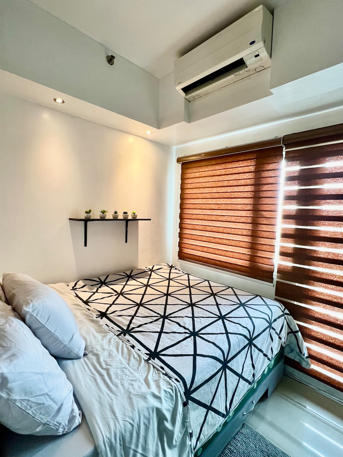 Appartement ✨ entièrement meublé d'une chambre au SMDC Jazz Residences ✨ Profitez d'une maison confortable avec un 🌆 balcon donnant sur la ville, une 🚿 salle de bain avec chauffage de douche et une 🛡️ sécurité 24h/24 et 7j/7. Restez connecté avec ⚡ PLDT Fibr (600 mbps filaire et WiFi) et profitez 📺 d'un divertissement illimité : Des milliers d'heures de Netflix🎬, Spotify🎵, télévision en direct, télévision de rattrapage et films à la demande. Amazon Fire TV 🔥 pour le streaming et les jeux. Amazon Echo Dot 🎙️ pour la musique à commande vocale et les fonctionnalités intelligentes.