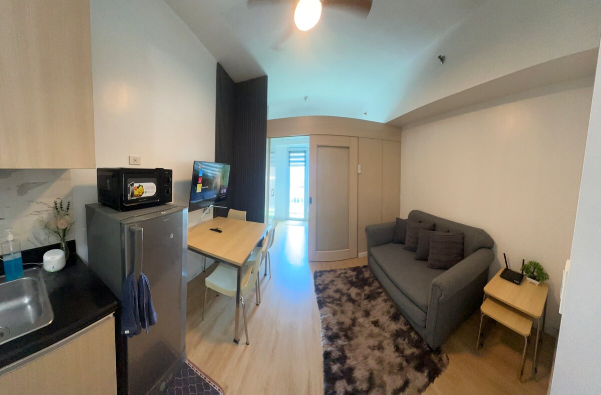 Séjournez dans un appartement entièrement meublé avec WiFi, télévision connectée, climatisation et une toute nouvelle cuisine. Profitez des équipements de l'immeuble comme une piscine, un jardin et une sécurité 24h/24. Idéalement situé à la station de MRT Boni, avec un accès direct au centre commercial Light Mall (supermarché, restaurants, cinéma). Près de Makati, BGC et Ortigas. Arrivée autonome disponible, avec ménage en option. Réservez dès maintenant pour un séjour sans tracas !