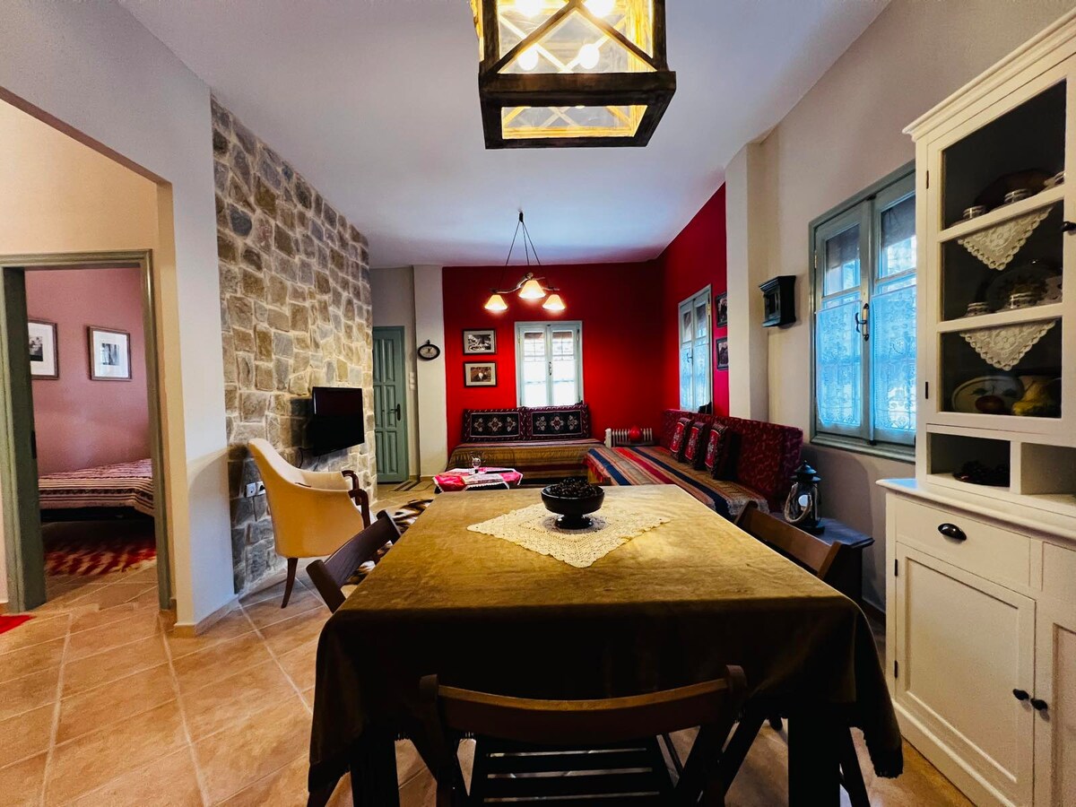 Maison traditionnelle en pierre dans la nature, dans le village de Greveniti, dans le Zagori oriental. Récemment rénové avec une grande cour donnant sur les montagnes de l'Épire. Notre village est situé à une altitude de 1000 m et à seulement 20 km de la jonction de Zagori oriental de l'autoroute Egnatia. À 45 minutes de Metsovo et à 20 minutes du magnifique lac des sources d'Aoos. L'espace est adapté aux couples et aux familles qui aiment la nature et ont envie de découvrir les beautés naturelles de notre pays.