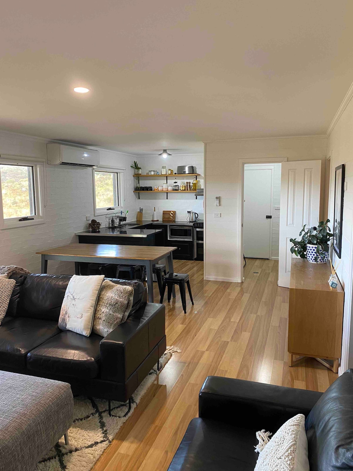 Ce logement unique a un style qui lui est propre. Conçu sur mesure à l'aide d'éléments rustiques recyclés et faits à la main, vous vous sentirez à l'aise et inspiré en séjournant ici. 3 chambres spacieuses, 2 salles de bains, un salon ouvert, une buanderie et un espace extérieur comprenant un barbecue, un foyer et une table. Le linge de maison et les serviettes sont fournis. Wifi gratuit. Situé au centre, à 5 min à pied du vignoble, du pub, des cafés et des magasins. À 25 min en voiture de Jindabyne, à 50 min de Thredbo pour le VTT/la neige ou Perisher et à 30 min d'Adaminaby.