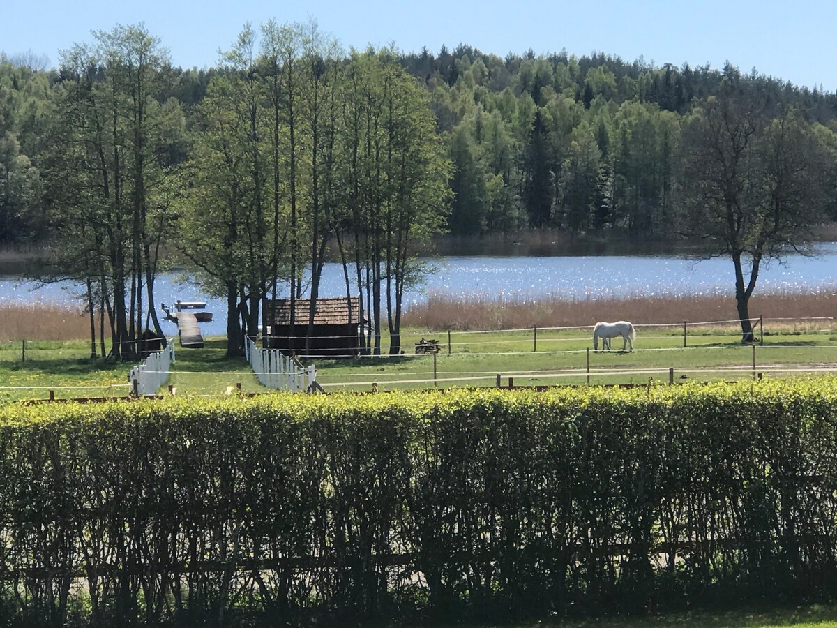 Frais pour les animaux max. 2 tot 200 sek. Pour en savoir plus, contactez l'hôte. Terrain marin Plage privée. Bateau à rames + électricité incluse. Radeau flottant avec moteur électrique et moteur supplémentaire. 7 personnes maximum. Excellente expérience pour sortir tranquillement sur le lac. Nagez, faites griller. Bâtons de pêche, tirez pour emprunter. Sauna à bois au bord du lac. Télévision. 7 vélos et environ 7 vélos pour enfants. Chariot à vélo. ) Proche de la forêt et de la nature. À 4 km du centre ville. Jättorps golf. Camping Djulö avec location de canoë et baignade. Djulö Herrgårds Café . Environ 30 min en vélo. Manoir Dufweholm.