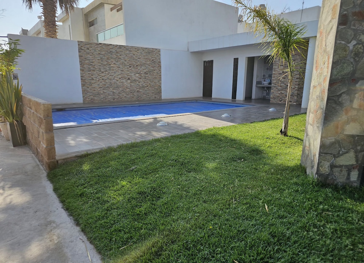 Prête pour que vous veniez avec toute votre famille (adaptée aux enfants, lave-linge et sèche-linge inclus) ou équipe de travail, maison privée super sécurisée avec piscine (non chauffée) gymnase et garde de sécurité. La maison dispose de 3 grandes chambres, salle de télévision, 4 salles de bains cuisine équipée avec four micro-ondes, gaz et électrique grand réfrigérateur, mixeur, friteuse à air et cafetière. Endroit pour garer 3 véhicules. Il est super proche d'un Oxxo. A noter : les prix sont inclus dans la TVA