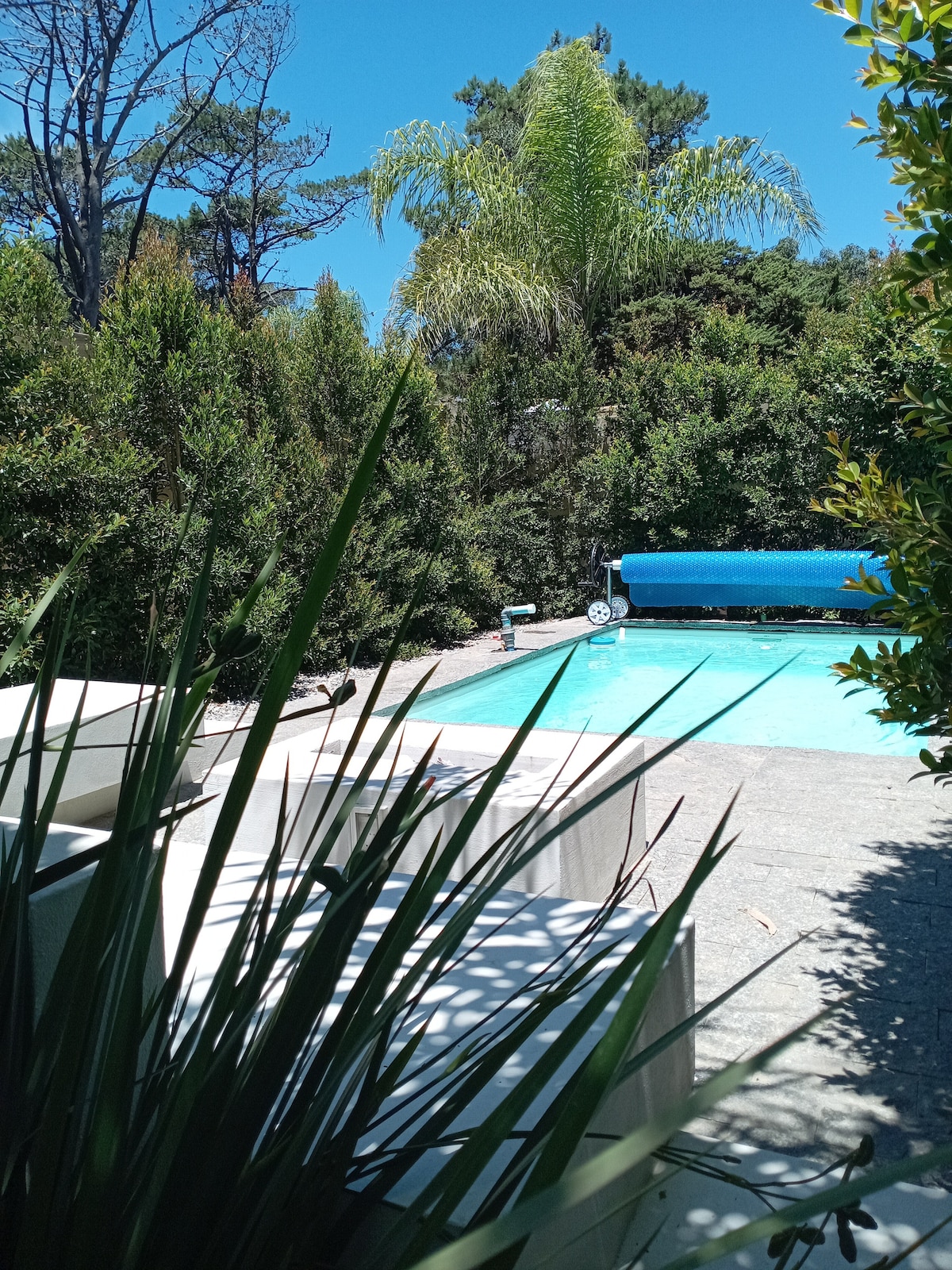 Relax with family at our peaceful paradise on the river. Our home sits on a huge garden right on the Arroyo Solís Grande. Especially tall trees provide ample shade and lots of pine cones for starting the BBQ or fireplace! With direct access to the river and a private dock, you can enjoy river activities, or walk 500m to the beach. Enjoy the sunset from the enclosed or outside terraces while you enjoy your Uruguayan BBQ! A modern kitchen and multiple living rooms make it perfect inside or out.