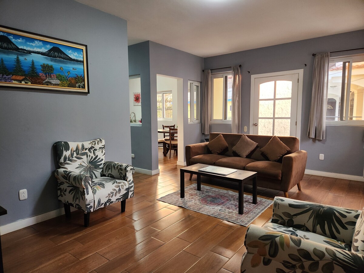 Profitez de la tranquillité au cœur de Panajachel. Notre appartement construit est l'endroit parfait pour les couples ou les familles à la recherche d'une maison loin de chez eux. Équipé de tous les appareils nécessaires, d'eau chaude 24h/24 et d'une connexion Wi-Fi gratuite, cet espace est idéal pour se détendre et profiter. *Services - Télévision par câble et Wi-Fi - Parking pour voitures pas si grandes - Laverie. À quelques minutes du lac Atitlán Ne manquez pas l'occasion de vivre dans ce bel endroit !