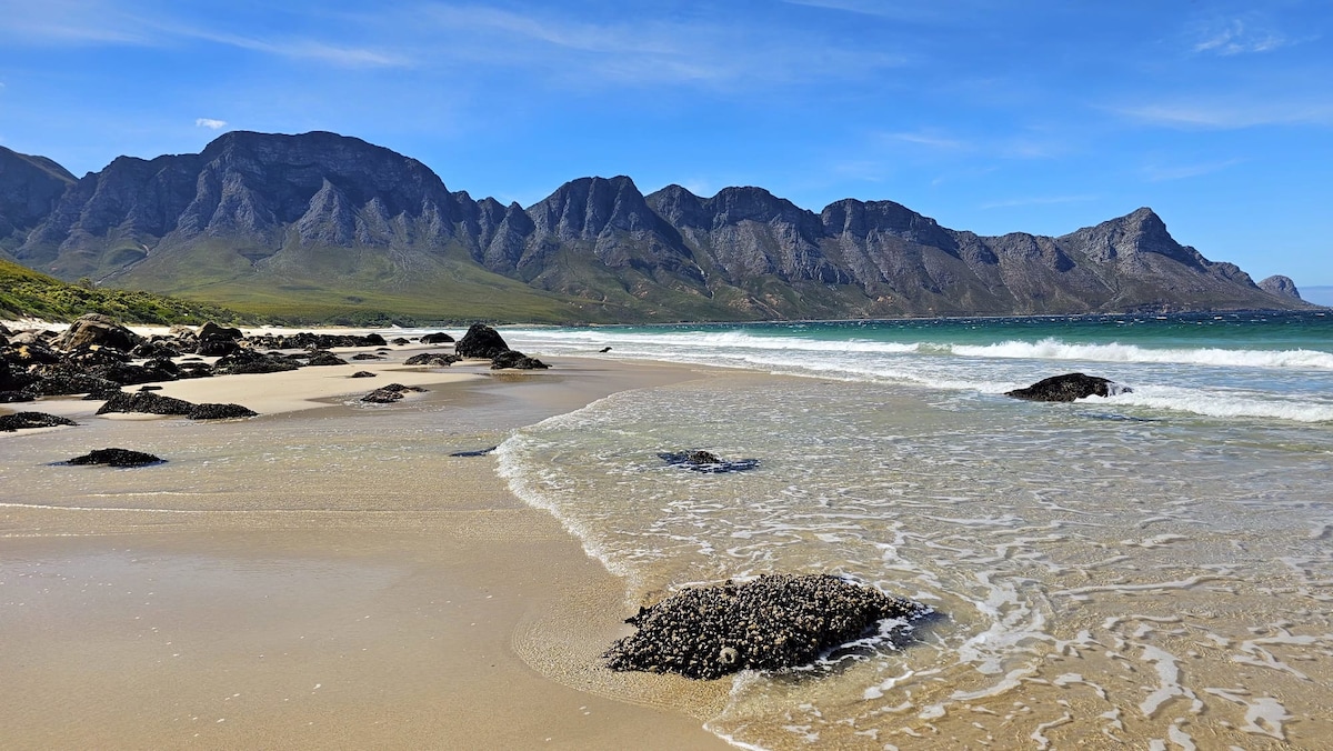 Cette maison est construite directement au-dessus d'une plage isolée à Gordon's Bay. Elle dispose de cinq arbres à bois de lait majestueux et d'un jardin indigène. La mer est souvent calme et la plage de sable est adaptée aux enfants. Il y a des bassins rocheux et des cormorans et des phoques dans la baie. Le port et le village sont accessibles à pied. La maison peut accueillir quatre personnes, mais une seule chambre est entièrement fermée ; le reste de la maison est ouvert. Sam habite à l'étage et sera présent pour vous accueillir à votre arrivée.