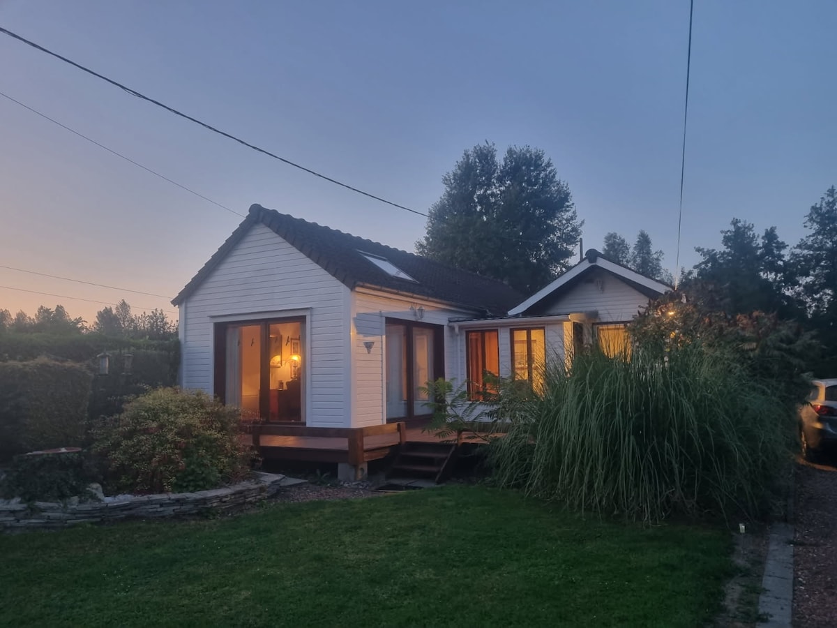 Venez vous ressourcer dans ce chalet chaleureux et authentique, niché dans un écrin de verdure à Machiel, un charmant village dans la campagne picarde. Idéal pour des vacances en famille ou entre amis. Proche des plages (25 min). Situé à 6 min de crécy en Ponthieu avec toutes les commodités. A 12 min du château de Regnières Ecluses. Pour une touche de charme authentique, le clocher du village sonne toutes les heures... un petit rappel poétique du temps qui s'écoule, entre balades et farniente!