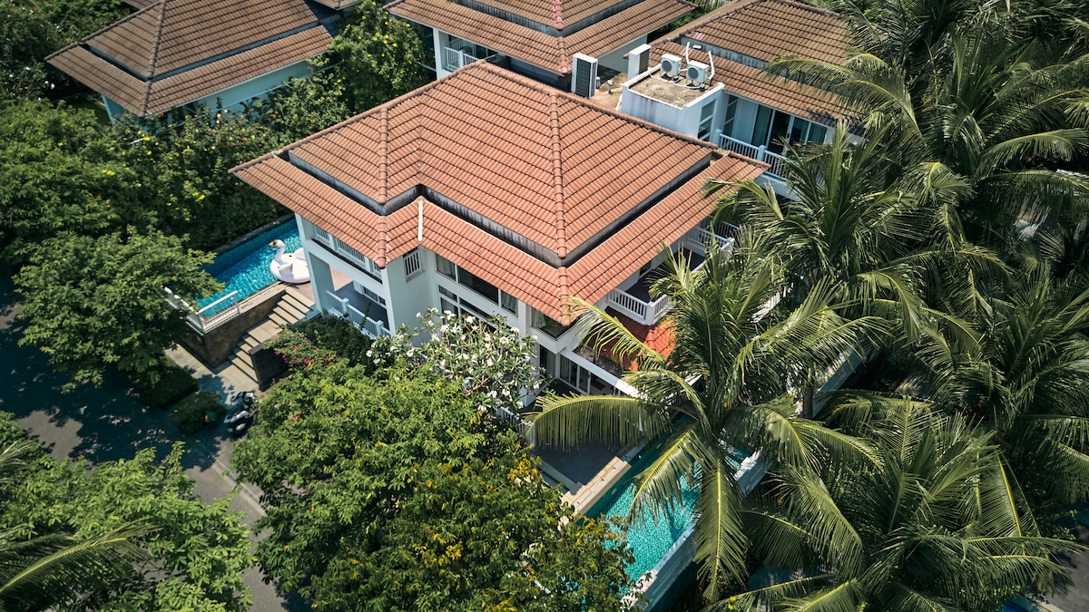 *Immerse yourself in the nature of Son Tra mountain forest-the green lung of Da Nang City. An villa includes 2 bedrooms and 1 attic with available amenities: * Natural waterfall swimming pool * Entertainment room in the attic, space for children and parents to enjoy the clouds and mountains, watch cartoons with available projector and screen, Bluetooth speakers to listen to music **Relaxing massage chair, exercise bike *Free airport pick-up for guests staying from 3 nights