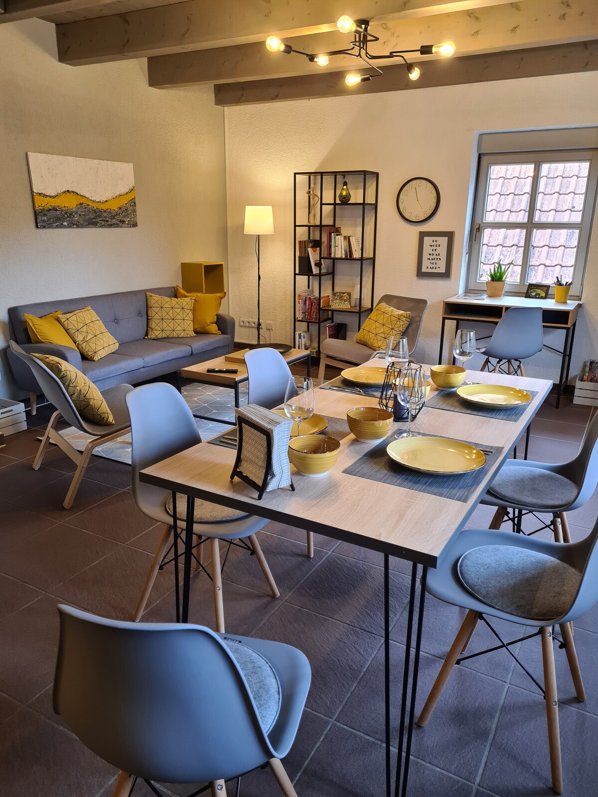 Notre appartement lumineux et spacieux est prêt à accueillir des hôtes après la rénovation de la grange. Dans deux chambres, deux salles de bains et un magnifique salon, salle à manger et coin cuisine, on peut profiter de ses vacances. Que ce soit à vélo, à pied ou en SUP, le long du Main, on peut passer de nombreuses heures agréables. Les villes de Würzburg et Rothenburg ainsi que d'innombrables petits villages viticoles franconiens sont également à proximité.