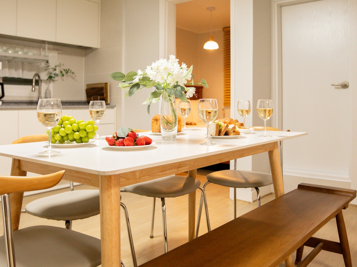Séjournez à Menuha, bienvenue dans votre autre maison. Menuhah signifie paix et repos en hébreu, et nous espérons que vous apprécierez le repos, la chaleur et la paix dans cet espace. C'est un bon endroit pour une grande famille de 8 personnes, 🧳une consigne à bagages est disponible et 🚗un parking gratuit est disponible pour 1 voiture. Notre logement est situé près de la station Joongang Veterans Hospital sur la ligne 9. 🌳 Parc olympique (environ 10 minutes en métro) 🎡 Lotte World (Jamsil) (environ 15-20 minutes en métro) 🏙 Gangnam (environ 25 minutes en métro) 🛍️ Seongsu (environ 30 minutes en métro) 🌉 Yeouido (environ 30 minutes en métro) 🎨 Hongdae (environ 40 minutes en métro) 🏯 Palais de Gyeongbokgung (environ 45 minutes en métro) Il est pratique de se rendre dans les principales destinations touristiques, et il est à environ 70-80 minutes de l'aéroport d'Incheon et à environ 40 minutes de l'aéroport de Gimpo, ce qui le rend adapté à la fois aux voyages et aux voyages d'affaires.