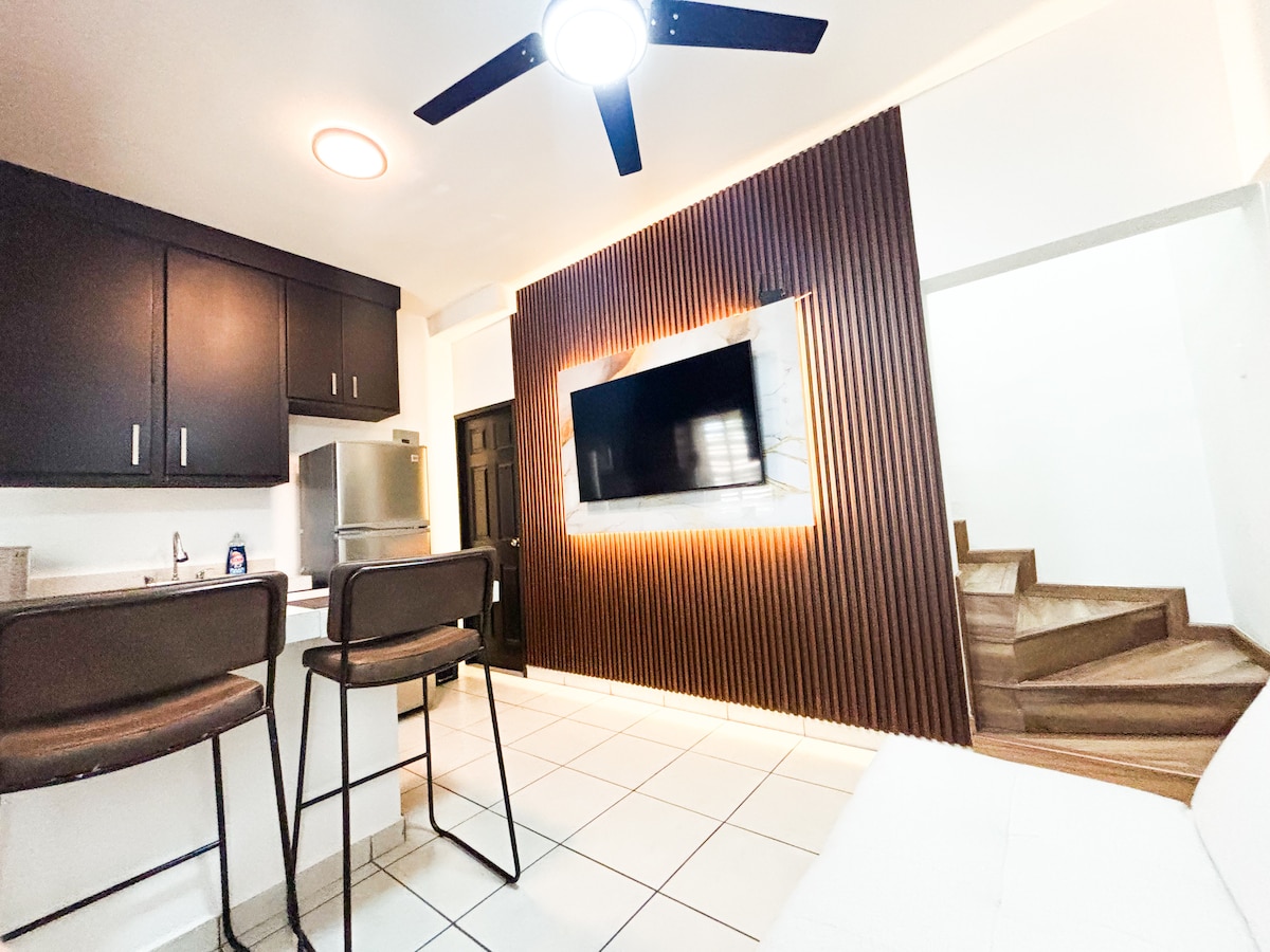 Appartement indépendant moderne et confortable pour des séjours courts et longs, il dispose de tous les services pour profiter d'un espace privé, avec cuisine équipée, lit, smart tv, wifi. L'appartement a un emplacement très central, à proximité des hôpitaux : San José, IMSS, Chávez, ISSSTESON, Restaurants , cinémas et commerces de proximité. Plusieurs itinéraires de bus passent par l'appartement.