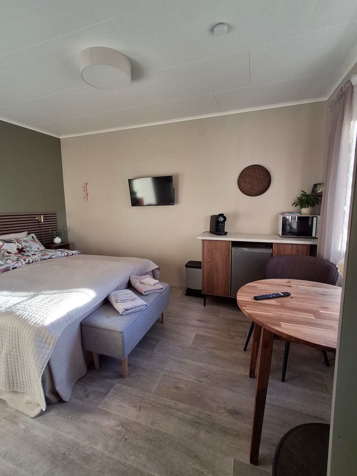 Minibacke est un charmant logement en campagne à Nykulla, à 2,5 km au nord de Växjö. Vous vivez dans une grange récemment rénovée avec des champs et une forêt à l'extérieur du coin et avec de nombreuses attractions à proximité. Le logement est le mieux adapté pour 2 personnes. Dans la cuisine, vous pouvez cuisiner des repas légers. Cuisinière, micro-ondes, cafetière et réfrigérateur avec compartiment congélateur disponible. Télévision intelligente avec Chromecast et barre de son avec connexion Bluetooth. Salle de bain avec WC, douche, lave-linge et sèche-linge. Sauna et baignoire extérieure avec eau chaude. 2 vélos sont inclus.