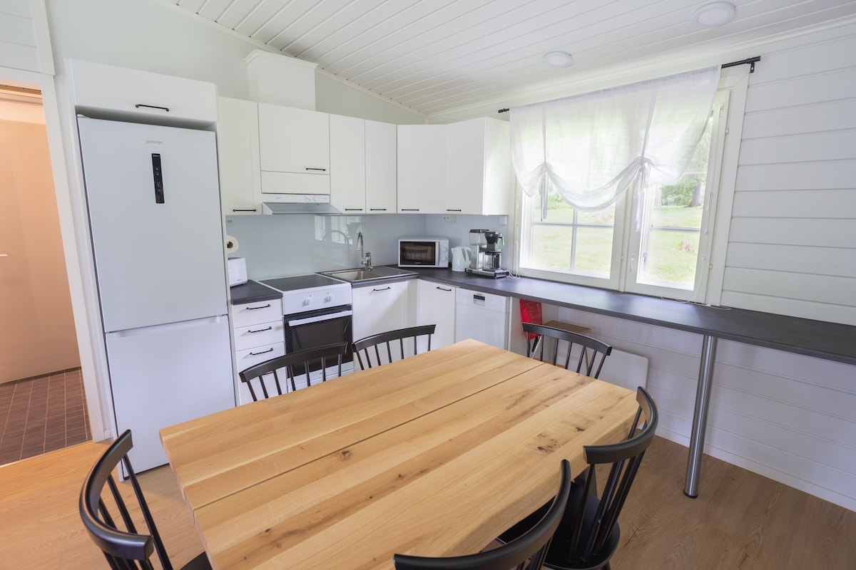 Villa Riihi est un rêve paisible. La maison d'ambiance et soigneusement décorée offre l'endroit idéal pour vous évader de la vie quotidienne en pleine nature. Il y a un hébergement pour sept personnes, et des groupes plus importants peuvent être hébergés dans la même cour. La forêt environnante, le chant des oiseaux le matin et la chaleur du four le soir créent une atmosphère unique. Parfait pour une retraite, des vacances ou une escapade. Le sauna unique construit à Riihi (1870) sur la plage garantit une expérience formidable avec la vapeur.
